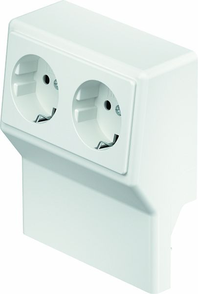 Geräteträger mit vorkonfektionierter 2-fach Schutzkontaktsteckdose mit erhöhtem Berührungsschutz für den Sockelleistenkanal in den Kanalbreiten 50 und 70 mm.