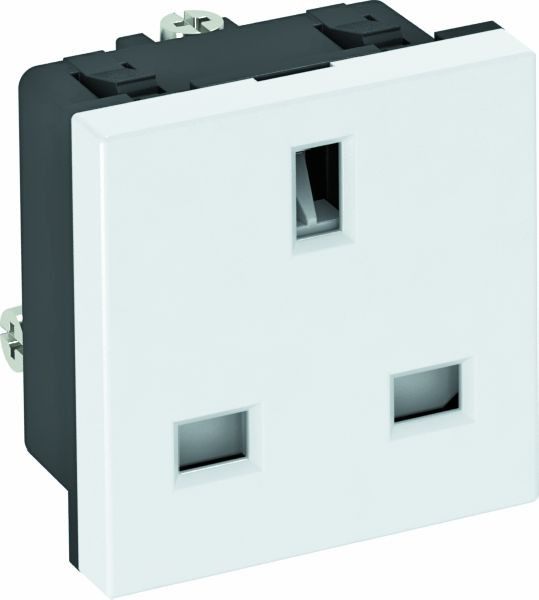 Steckdose 1-fach 0°, British Standard, konform zu BS 1363, mit erhöhtem Berührungsschutz, mit Schraubklemmen, 2-polig, 13 A, 250 V~.