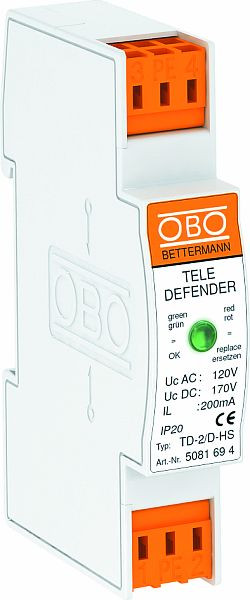 | Kurzbeschreibung | Überspannungsschutzgerät für TK-Anlagen mit Hutschiene 170V Kunststoff weiß |