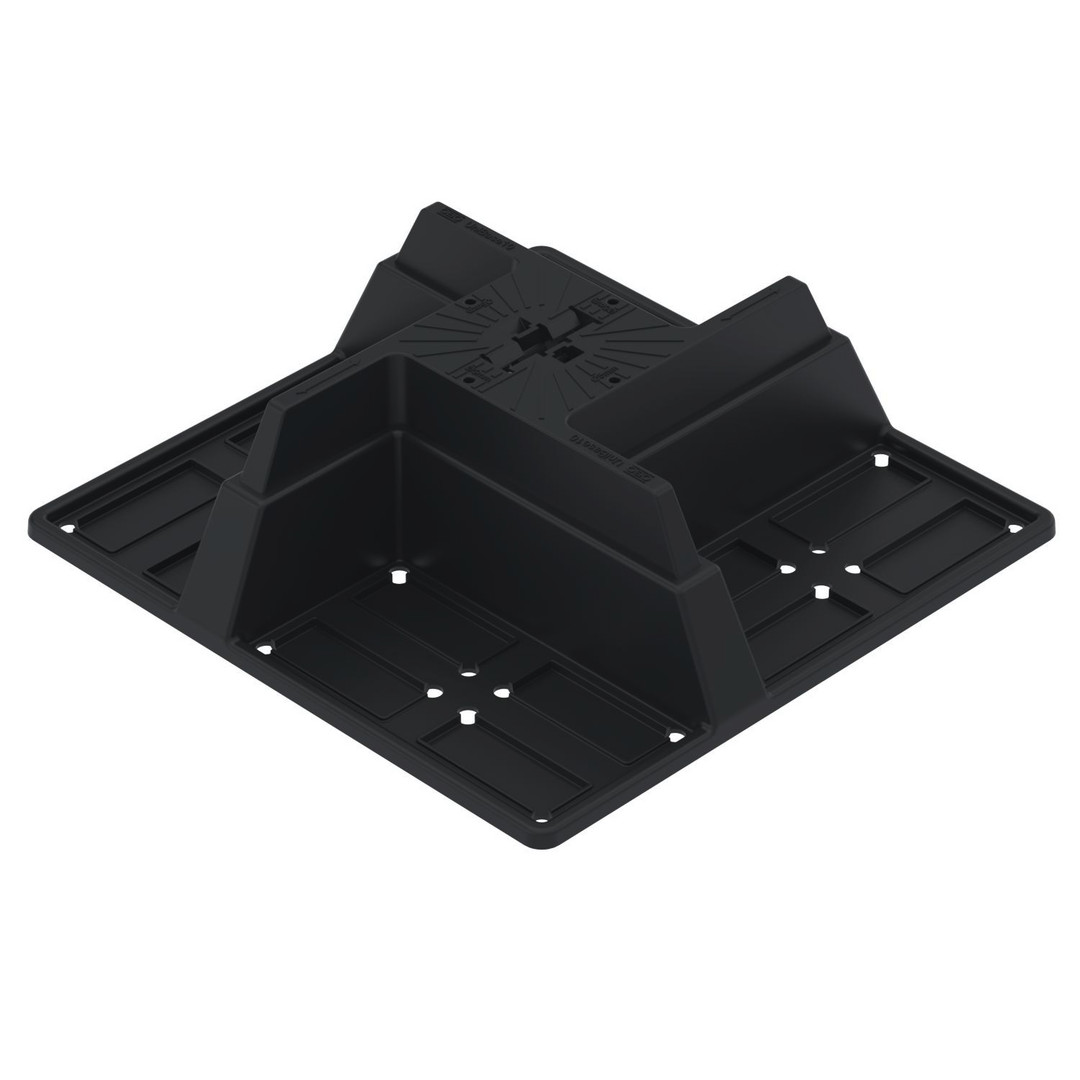 Universal-Standfuß zum Ballastieren mit handelsüblichen Pflastersteinen bis zu einem Maß von 200x100x100 mm. Einsetzbar auf Flachdächern, z. B. für die Montage von PV-Montagesystemen oder zur Leitungsführung mit Kabelrinnen oder mit Gitterrinnen in Verbindung mit Dachleitungshalter 165 MBG HGRM. Pflastersteine nicht im Lieferumfang enthalten.