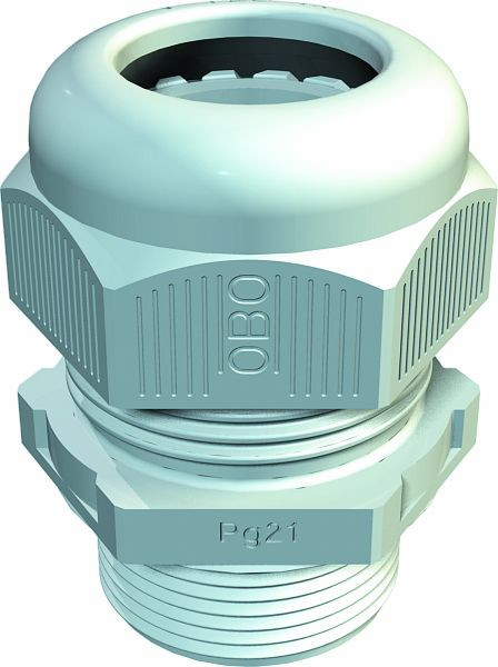 Kabelverschraubung mit PG-Anschlussgewinde in Hutmutterbauart, für Kabelabzweigkästen, Gehäuse, Verteilerkästen im privaten und industriellen Bereich. Mit Zugentlastung und integrierter Dichtlippe, geprüft nach DIN EN 62444. Schutzklasse IP68. Einsetzbar von -20°C bis +65°C.
