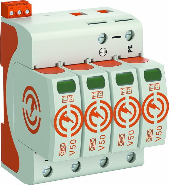• Blitzstromableitvermögen 12,5 kA (10/350) pro Pol und bis zu 50kA (10/350) gesamt