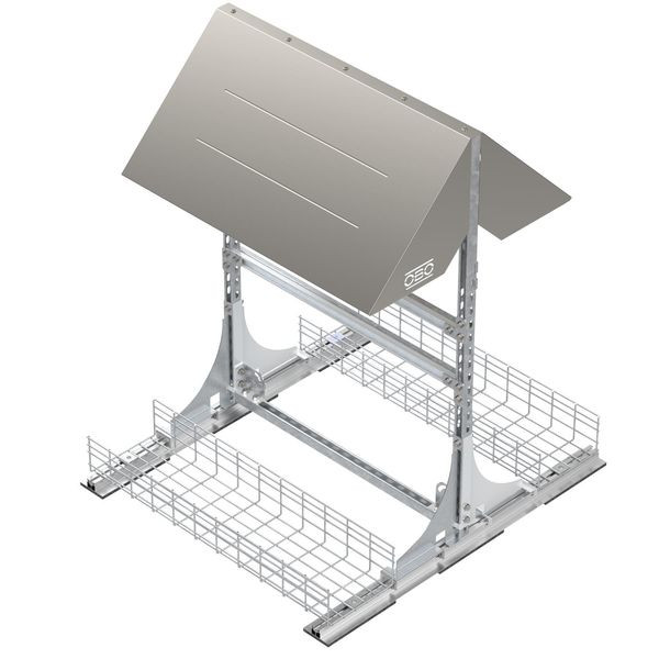 Wechselrichterrahmen zur geschützten Montage von mehreren Wechselrichtern für PV-Systeme Flachdach. Freistehend. Beidseitige Belegung möglich. Inklusive 2 Gitterrinnen zur Ballastierung und Kabelführung.