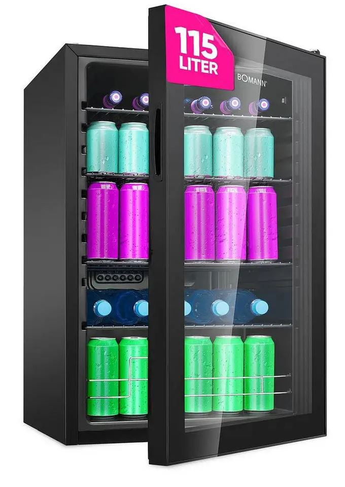 Nutzinhalt: 115 Liter, LED Innenraumbeleuchtung, separat schaltbar, Stufenlose Temperaturregelung, Temperaturbereich: +3°C ~ +18°C, 4 Gitterablagen, 6 optionale Ebenen, Getränkehalterungsbüge,l Doppelverglaste Gerätetür mit schwarzem Rahmen und eingelassenem Handgriff, Türanschlag rechts, wechselbar, Justierbare Standfüße