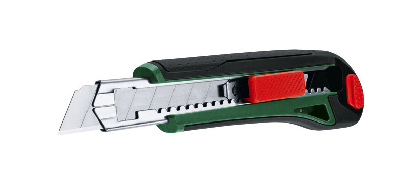 Handwerkzeuge Cutter-Messer 18 mm. Müheloses und sicheres Schneiden mit dem hochwertigen Cuttermesser. Maximaler Komfort und Kontrolle dank ergonomischer Bauweise. Sicheres Arbeiten mit der automatischen Klingenarretierung. Automatischer Klingennachschub ermöglicht einen sicheren Klingenwechsel. Unterbrechungsfreies Arbeiten dank Kartusche mit Ersatzklingen. Geeignet für handelsübliche 18-mm-Abbrechklingen mit 7 Segmenten