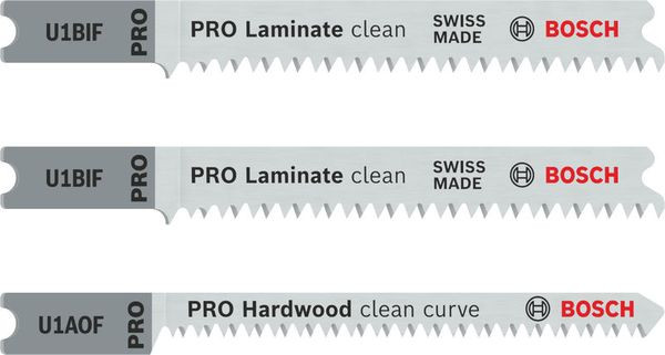 Herausragende Lebensdauer beim Schneiden von Laminatmaterialien! Du bist Bodenleger und benötigst langlebige Stichsägeblätter mit U-Schaft, mit denen du Laminatböden schneiden kannst? Verwende die Stichsägeblätter in diesem PRO Laminate Set, um gerade und Kurvenschnitte zu erzielen ? immer und immer wieder.
