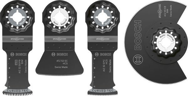 Das Set für Bodenbeläge und Einbau bietet Bodenverlegern alle oszillierenden Multitool-Sägeblätter, die sie zum Schneiden aller gängigen Bodenbelagsmaterialien und zur Vorbereitung der Oberflächen für einen neuen Boden benötigen.