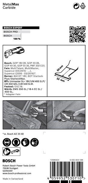 | Kurzbeschreibung | EXPERT MetalMax PAIZ 32 AIT Blatt für Multifunktionswerkzeuge, 50 x 32 mm |