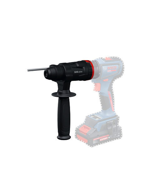 FlexiClick-Aufsatz GFA 18-H, Der GFA 18-H Professional ist der erste Bohrhammeraufsatz in der 18V-Klasse. Er bietet optimale Flexibilität, indem er den FlexiClick-Bohrschrauber in einen SDS plus-Bohrhammer verwandelt. Damit ist er der einzige 18V-Bohrschrauber, der sich mit einer Schlagenergie von 1,0 J für müheloses Hammerbohren in Beton eignet. Der GFA 18-H ist Teil des 18V-FlexiClick-Systems und bietet zahlreiche, leicht zu wechselnde Aufsätze. Er eignet sich für viele verschiedene Anwendungen, und macht damit beim Handwerken das Leben leichter. Das Bosch Professional FlexiClick System ? perfekt gerüstet für professionelle Arbeiten. Der GFA 18-H eignet sich zum Hammerbohren bis zu einem Durchmesser von 10 mm in Beton und 16 mm in Mauerwerk. Er ist mit den 18V-FlexiClick-Bohrschraubern kompatibel. Zusatzhandgriff (2 602 025 141). Karton