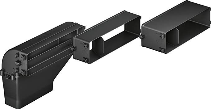 3 zusammensteckbare Tiefenadapter (40mm, 80mm, 120mm) für Arbeitsplattentiefen von 600 - 750mm, 90° Umlenkstück, Verbindungsstück für weitergehende Verrohrungen mit 220x90mm Flachkanäle.
