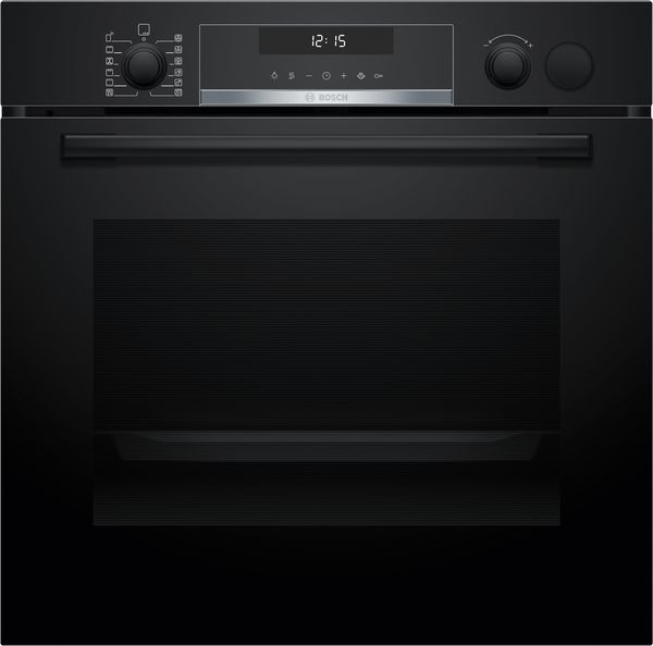 Backofentyp und Heizart Backofen mit 12Beheizungsarten: 3D Heißluft, Ober-/Unterhitze, Umluftgrill, Großflächengrill, Pizzastufe, Sanftgaren, Auftauen, Heißluft Sanft, Regenerieren mit Dampfzugabe Beheizungsarten kombinierbar mit Dampfstoß: 3D Heißluft, Umluftgrill + Dampf, Ober-/Unterhitze + Dampf Zusätzliche Heizarten über die Home Connect App: Air Fry, Unterhitze, Ruhen lassen, Vorwärmen Temperaturregelung von 30 °C - 275 °C Garraumvolumen: 71 l Zubehörträger / Auszugssystem: Einschubebenen: 5 Auszug nachrüstbar Design Drehwähler, Runde Bedienknebel, Versenkknebel Garraum: Email anthrazit Reinigung Selbstreinigungs-Technik (Pyrolyse) Vollglas-Innentür Komfort Bedienung mit LCD-Display Elektronik-Uhr Optische Aufheizkontrolle Temperaturvorschlag Autostart Bratenthermometer AutoPilot AutoPilot 30 Programme Zusatzfunktionen: Entkalkungsprogramm Klapptür Backofengriff aus Aluminium Klapptür mit Soft Close und Soft Open: Sanftes Öffnen und Schließen der Backofentür. AutoPilot: Mit den Automatikprogrammen gelingt die Zubereitung immer. Einfach Gericht auswählen und Gewicht einstellen. Bratenthermometer: Misst die Kerntemperatur und schaltet die Heizart ab bei Erreichen. Schnellaufheizung: Schnell zur Zieltemperatur ohne höheren Energieverbrauch Backofenbeleuchtung abschaltbar, Halogen-Innenbeleuchtung Dampfintensität(en): stark, leicht Leeranzeige Wassertank Externe Dampferzeugung Kühlgebläse Home Connect Zubehör Air Fry- & Grillblech Kombirost großflächige Universalpfanne Umwelt und Sicherheit Sehr geringe Türtemperatur Niedrige Türtemperatur während der pyrolytischen Reinigung 4-fache Türverglasung Kindersicherung Türverriegelung bei Pyrolysebetrieb Sicherheitsabschaltung Restwärmeanzeige Türkontaktschalter Technische Info Länge des Anschlusskabels: 120 cm Nennspannung: 220 - 240 V Gesamtanschlusswert Elektro: 3.6 kW Energieeffizienzklasse (gem. EU Nr. 65/2014): A+(auf einer Energieeffizienzklassen-Skala von A+++ bis D) Energieverbrauch pro Zyklus im konventionellen Modus: 0.94 kWh Energieverbrauch pro Zyklus im Umluft-Modus: 0.69 kWh Zahl der Garräume: 1 Wärmequelle: elektrisch Innenraumvolumen: 71 l Maße Gerätemaße (HxBxT): 595 x 594 x 548mm Nischenmaße (HxBxT): 595 mm x 560 mm x 550 mm „Maße und Einbauhinweise zu diesem Gerät gemäß technischer Zeichnung beachten“ Um die technische und optische Kompatibilität zu gewährleisten, empfehlen wir Ihnen, Komplementär-Produkte innerhalb der Produktserie Serie 6 zu wählen, um die bestmögliche Einbausituation Ihrer Einbaugeräte zu gewährleisten.