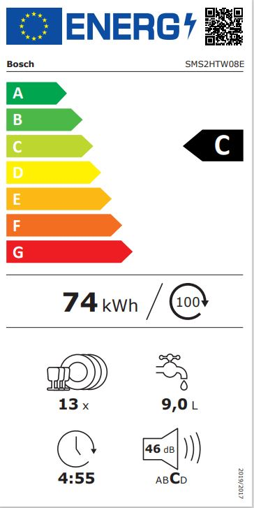 | Energieeffizienzklasse Geschirrspüler (2019/2017/EU) | C |