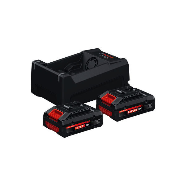 Batterie/Ladegerät Set 2x EXBA18V-40 + GAL 12V/18V-80, Der Hochleistungsakku EXBA18V-40 liefert bis zu 2000 W Maximalleistung für anspruchsvolle Anwendungen (basierend auf internen Labortests. sofortige Maximalleistung mit voll geladenem, neuem Akku) bei äußerst kompaktem Design. Er basiert auf fortschrittlicher „Tabless“-Zelltechnologie, während konventionelle Akkus „Multi-Tab“-Zellen besitzen, die nur zwei Tabs zur Stromleitung nutzen. Dies führt zu einem Engpass, der den Widerstand des Akkus vergrößert. „Tabless“-Zelltechnologie beseitigt diesen Engpass. Statt lediglich zwei Strompfaden bietet sie unzählige parallele Strompfade. Das Ergebnis: geringerer Widerstand, weniger Wärme, beeindruckende Leistung und eine hervorragende Energiedichte. Mit seinem neuen verstärkten, robusten Gehäuse, dem ausgezeichneten Wärmemanagement durch COOLPACK 2.0 und „Tabless“-Zelltechnologie bietet der EXBA18V-40 eine lange Lebensdauer und ist deshalb ideal für Profis, die Langlebigkeit und hohe Leistung benötigen. Einfach und praktisch: Das GAL 12V/18V-80 Professional ist ein schnelles Dual-Voltage-Ladegerät für alle 12V und 18V Akkus von Bosch Professional. Dank des hohen Ladestroms von 8 A kann ein 18V-/4.0Ah-Akku in 38 Minuten vollständig geladen werden. Dieses Ladegerät reduziert mit seinem intelligenten Active Air Cooling 3.0 die Ausfallzeiten, indem es die Batterie vor, während und nach dem Laden abkühlt. Dieses kompakte Ladegerät ist mit seiner Bay-in-Bay-Lösung äußerst praktisch zu verwenden. Der EXBA18V-40 besitzt eine 5-LED-Anzeige für den Ladezustand mit Restkapazität und Defektrisikoerkennung. Der EXBA18V-40 und das Ladegerät GAL 12V/18V-80 sind beide mit dem Bosch Professional 18V System und der Mehrmarken-Akkuallianz AMPShare kompatibel. Darüber hinaus ist das Ladegerät GAL 12V/18V-80 auch mit dem Bosch Professional 12V System kompatibel. Der EXBA18V-40 wiegt nur 605 g. Der GAL 12V/18V-80 bietet eine einfache Wandmontage und zwei LED-Anzeigen für den Ladezustand. Karton