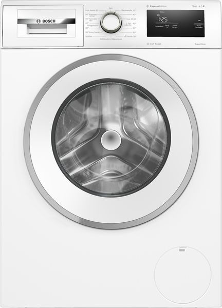 Leistung und Verbrauch Energie-Effizienzklasse¹: A Stromverbrauch² / Wasserverbrauch³: 46 kWh / 47 Liter Nennkapazität: 1 - 8 kg Programmlaufzeit4: 3:33 h:min Schleudereffizienzklasse: B Schleuderdrehzahl**: 0 - 1400 U/Min. Geräuschwert: 71 dB (A) re 1 pW Geräuscheffizienzklasse: A Programme Standardprogramme: Baumwolle, Pflegeleicht, Fein/Seide, Wolle-Handwäsche Iron Assist: Entknittert saubere, trockene Kleidung mit Dampf in 20 Minuten.* Optionen SpeedPerfect: perfekt sauber in bis zu 65% weniger Zeit. *** TouchControl-Tasten: Fertig in, SpeedPerfect, Start / Pause mit Nachlegefunktion, Drehzahlabwahl/Spülstop Komfort und Sicherheit Nachlegefunktion: Die Nachlegefunktion ermöglicht Ihnen das Nachlegen von Wäschestücken sogar nach Start des Waschprogramms. Großes Display für Programmablauf, Drehzahl, Restzeit, 24 h Endezeitvorwahl und Beladungsempfehlung AntiVibration Design: mehr Stabilität und Laufruhe EcoSilence Drive: leiser Motor mit langer Lebensdauer ActiveWater Plus: für effizienteste Wassernutzung auch bei kleinen Waschladungen dank automatischer Beladungskennung. Kindersicherung 32 cm-Tür, silber-weiß mit 160° Türöffnungswinkel AquaStop®: eine Bosch Garantie bei Wasserschäden - ein Geräteleben lang* Technische Informationen Stapelbar als Wasch-Trockensäule, mit dem zum Trockner passenden Verbindungssatz (Sonderzubehör) unterschiebbar ab 85 cm Nischenhöhe Gerätemaße (H x B): 84.5 cm x 59.8 cm Gerätetiefe: 59.0 cm Gerätetiefe inkl. Tür: 63.2 cm Gerätetiefe mit geöffneter Tür: 104.9 cm