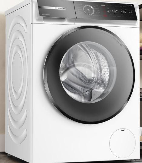 Leistung und Verbrauch Energie-Effizienzklasse¹: A Stromverbrauch² / Wasserverbrauch³: 49 kWh / 46 Liter Nennkapazität: 1 - 9 kg Programmlaufzeit4: 3:39 h:min Schleudereffizienzklasse: A Schleuderdrehzahl**: 400 - 1600 U/Min. Geräuschwert: 71 dB (A) re 1 pW Geräuscheffizienzklasse: A Programme Standardprogramme: Baumwolle, Pflegeleicht, Fein/Seide, Wolle-Handwäsche Iron Assist: Entknittert saubere, trockene Kleidung mit Dampf in 20 Minuten.* Spezialprogramme: Jeans/Dunkle Wäsche, Schleudern/Abpumpen, Schnell/Mix, Sportswear, Spülen, ExtraKurz 15'/30', Hygiene Plus, App, Iron Assist Zusätzliche Programme über Home Connect: Daunen, Gardinen, Handtücher, Hemden, Outdoor, Trommelreinigung mit Erinnerungsfunktion Optionen Home Connect: Fernsteuerung, Energiemanagement, Ferndiagnose, IntelligentDry oder Programm Download. Halten Sie Ihre Hausgeräte dank Firmware-Update immer auf dem neuesten Stand. Fleckenautomatik: standardmäßig 6 Flecken-Optionen und 10 weitere über die HomeConnect-App Die Option Dampf reduziert Knitterfalten um bis zu 40%.***** TouchControl-Tasten: Ein/Aus, Fertig in, Fleckenauswahl, Intensiv Plus, Kindersicherung, Memory, Nachtwaschen / Leisewaschen, Power Spülen, Fernstart, Start / Pause mit Nachlegefunktion, Temperatur, SpeedPerfect, Vorwäsche, Drehzahlabwahl/Spülstop Komfort und Sicherheit Nachlegefunktion: Die Nachlegefunktion ermöglicht Ihnen das Nachlegen von Wäschestücken sogar nach Start des Waschprogramms. Intuitive und ergonomische Bedienblende 4D Wash System: höchste Waschleistung durch effektive Durchfeuchtung der Wäsche und Nutzung des Waschmittels. Hygiene: Saubere Wäsche und effektive Beseitigung von Keimen Mini Load: wäscht einzelne Wäschestücke und kleine Beladungen effizient Trommelinnenbeleuchtung: LED VarioTrommel: schonendes und effizientes Waschen EcoSilence Drive: leiser Motor mit langer Lebensdauer 10 Jahre Motorgarantie AntiVibration Design: mehr Stabilität und Laufruhe ActiveWater Plus: für effizienteste Wassernutzung auch bei kleinen Waschladungen dank automatischer Beladungskennung. Geräuschdämmung Digitaler Bedienring mit hinterleuchteter LED-Programmanzeige Anzeige für Überdosierung AquaStop®: eine Bosch Garantie bei Wasserschäden - ein Geräteleben lang* Technische Informationen Stapelbar als Wasch-Trockensäule, mit dem zum Trockner passenden Verbindungssatz (Sonderzubehör) unterschiebbar ab 85 cm Nischenhöhe Gerätemaße (H x B): 84.5 cm x 59.8 cm Gerätetiefe: 59.0 cm Gerätetiefe inkl. Tür: 64.8 cm Gerätetiefe mit geöffneter Tür: 109.0 cm