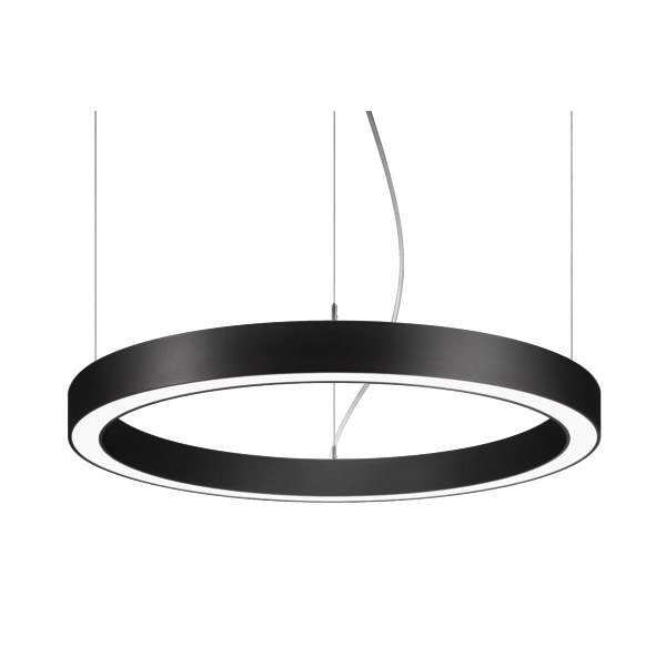 LED-Pendel-Ringleuchte, direkt/indirekt, dimmbar, strukturschwarz, rund. Pendelmontage, Deckenmontage Ausführung: ohne Fassung, Montageart: Pendelmontage, Montageort: Deckenmontage, Material: Aluminium / Stahl / Kunststoff, Schutzart raumseitig: nach DIN EN 60529: IP20, Schutzklasse: (EN 61140) I, Spannung: 230V AC 50Hz, Leistung: 60 W, Anzahl der Leuchtmittel / Fassungen: 1 Stück, Lichtstrom: 8.228 lm, Farbtemperatur: von 2.700 K bis 6.500 K, Lichtfarbe: weiß, Abstrahlwinkel: 110°, Mit Betriebsgerät: Ja, Art der Dimmung: DALI-DT8.