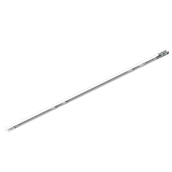 Tragschiene 11-polig, weiß, rechteckig. Rechteckige Aluminium-Tragschiene für modulares Schnellmontage-Lichtbandsystem zur mechanischen Aufnahme und elektrischen Versorgung modularer Systemkomponenten sowie zur Integration systemkonformer Einspeise- und Abschlusskomponenten. Verwindungssteifes Aluminiumprofil mit optimierter Profilgeometrie zur hohen Biege- und Längsstabilität für Industrie-, Logistik- und Arbeitsbereiche. Tragschienenlänge 2.876 mm, Tragschienenbreite 64,7 mm, Höhe 45,5 mm. Mit integrierter halogenfreier Durchgangsverdrahtung 2,5 mm², 11-polig (L1, L2, L3, N, PE, DIM+, DIM-, EL1, EL2, EN1, EN2), verpolungssicherer Steckverbindung und durchgängiger Schutzleiterführung. Geeignet für schaltbare sowie dimmbare Anwendungen mit erweiterter Leiterinfrastruktur. Geeignet für Direkt- und Abhängemontage (Seil/Kette). Schutzklasse I gemäß EN 61140. Schutzart IP20 gemäß DIN EN 60529. Zulässige Umgebungstemperatur (ta) -20 °C bis +35 °C. Oberfläche pulverbeschichtet, Farbe weiß (RAL 9016). Montageart: Anbaumontage, Material: Aluminium, Abmessung Profil: L: 2.876 mm x B: 64,7 mm x H: 45,5 mm.