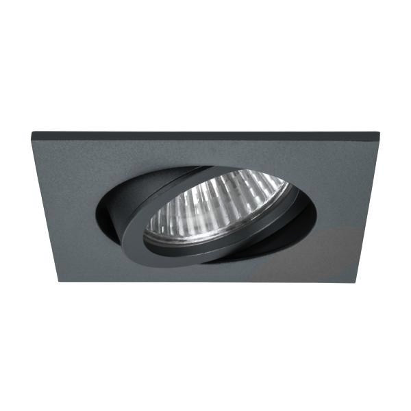 Einbaustrahler, MR16, titan matt, quadratisch. Ausgeführt in kompakter Bauform für werkzeuglose Schnellmontage zum Deckeneinbau. Ausführung: GX5,3, Montageart: Einbaumontage, Montageort: Deckenmontage, Material: Aluminium, Schutzart raumseitig: nach DIN EN 60529: IP20, Schutzklasse: (EN 61140) III, Spannung: 12 V, Leistung: 13 W, Anzahl der Leuchtmittel / Fassungen: 1 Stück, Verstellbarkeit: schwenkbar, ohne Betriebsgerät, Dimmbar: Abhängig vom Betriebsgerät, Art der Dimmung: Abhängig vom Betriebsgerät.