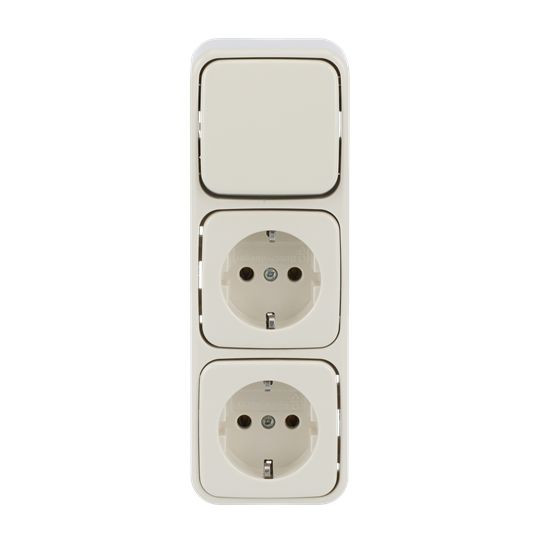 | Kurzbeschreibung | Kombination 2 SCHUKO® Steckdosen, mit Wippschalter Aus- und Wechselschaltung |
