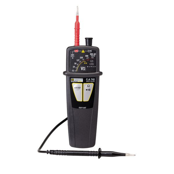 Der Spannungsprüfer (VAT) C.A 742 ist ein unverzichtbares Hilfsmittel für jeden Elektriker, um vor einem Eingriff in eine ans Netz angeschlossene Elektroanlage die Spannungsfreiheit zu prüfen. Er erfüllt die Norm IEC 61243-3 Ausg. 3 und kann daher bei allen Außen- und Innen-Anlagen der Kategorie 600 V CAT IV verwendet werden.