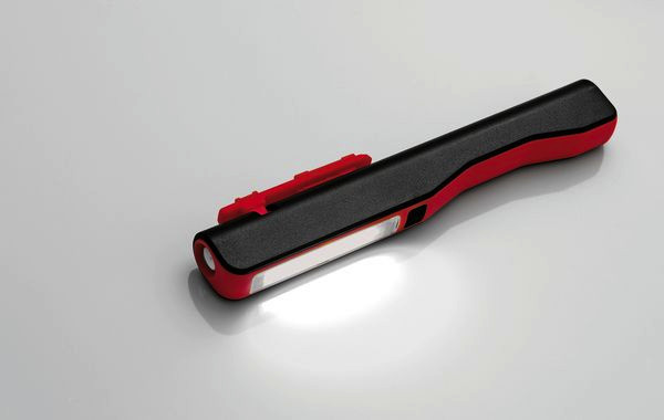 LED-Pen-Leuchte, umschaltbar von Flächen- zur Punktausleuchtung (Taschenlampe). Große Ausleuchtung im Taschenformat, Gehäuse aus ABS-Material, wieder aufladbar durch Li-Ion Batterie mit Befestigungsclip für Hemdtasche und Hosentaschen. 2 Magnete sorgen für sicheren Halt an metallischen Gegenständen, inkl. USB-Ladekabel. Maße: 180x20x35 mm