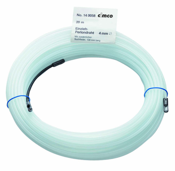 Einzieh-Kunststoffbänder aus verstrecktem Monofil, mit massiven Stahl-Endstücken und zusätzlicher Suchfeder, ca. 130 mm lang. Zugösen beidseitig, Material mit einem Ø von4 mm, Zugfestigkeit 900 N, Größe: 10 m