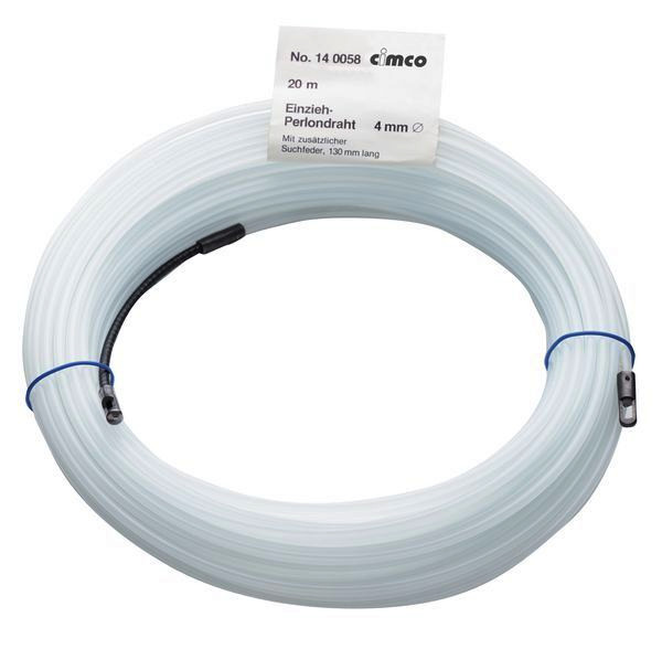 Einzieh-Kunststoffbänder aus verstrecktem Monofil, mit massiven Stahl-Endstücken und zusätzlicher Suchfeder, ca. 130 mm lang. Zugösen beidseitig, Material mit einem Ø von4 mm, Zugfestigkeit 900 N, Größe: 30 m