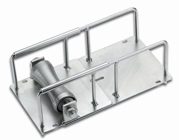 Kabelverlegehilfen für Trassenanfänge und gerade Strecken Taximax. Verhinderung von Kabelbeschädigung bei scharfkantigen Trassenanfängen. Verwendbar auch bei Überbelegung der Kabeltrassen. Auch bei längeren Strecken ist kein weiterer Monteur notwendig! Verzinkt Metallausführung mit beidseitig kugelgelagerter Aluminiumrolle. Mit seitlichen Langlöchern zur Kabelbinderbefestigung an den Trassen (wenn mit Kabeln schon belegt). Max. Kabel-Ø 70 mm; verstellbar für unterschiedliche Sprossen- und Gitterabstände