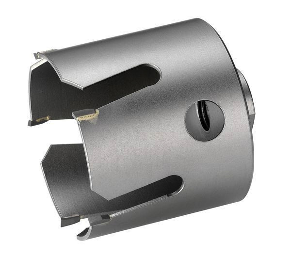 Hartmetall-Bohrkronen 60 Trockenbau; Arbeitslänge: 60 mm mit aufgelöteten Hartmetallsegmenten, Bohrkronenaufnahme M16, geeignet für: Sperrholz, Kunststoffe (PVC), Fermacell, Tischlerplatte, Spanplatte und GFK. Ausführung: Höhe 8 mm; Segment Länge: 2,5 mm; Anzahl: 5; Ø: 68 mm.