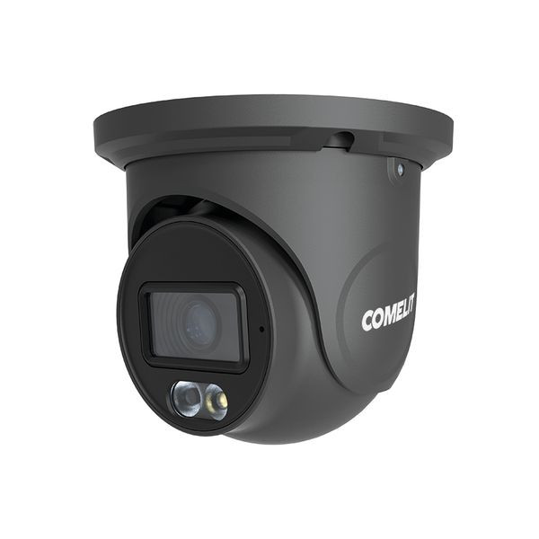 IP Turret-Kamera ColorUP Serie Next, Festbrennweite 2.8 mm, Auflösung 4MP@30 fps, White LED mit 20 m Reichweite, IR-LED mit 20 m Reichweite (Smart IR), ColorUp Funktion (White LED), Dual Light (IR+White LED mit Personen-/Fahrzeugerkennung) und IR-LED. ONVIF kompatibel. Videoanalysefunktionen: Eindringen in einen Bereich (Unterscheidung Personen/Fahrzeuge), Überschreiten einer Linie (Unterscheidung Personen/Fahrzeuge), Funktion beseitigtes/abgestelltes Objekt. WDR 120Db, H.265+ / H.265 / H.264+ / H.264 / MJPEGVideokomprimierung, SD-Steckplatz (max. 256 GB). Audio: 1 in, eingebautes Mikrofon. Wasserdichtes IP67-Aluminiumdruckgussgehäuse, 12VDC/PoE IEEE802.3afSpannungsversorgung. Kompatible Browser: Google Chrome/Edge/Firefox/Safari. Farbe Verkehrsgrau B, RAL 7043. Kompatibles Zubehör: JBA-TBBAB, CMA-KTBBAB, WMA-KTBBAB, PMA-AB, AMA-AB, WMA-01AB.