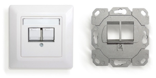 Modular einsetzbare Anschlussdose zur Aufnahme von 2 geschirmten Keystone-Modulen, Montageplatte besteht aus Zinkdruckguss (Anschlussmöglichkeit für den Potentialausgleich), Einbindung in beliebiges Schalterprogramm möglich (bei Verwendung der jeweiligen 3-fach-TAE-Abdeckung/Zentralplatte und des Rahmens aus dem gewünschten Schalterprogramm), Keystone-Module lassen sich mühelos in den Montagerahmen einklinken, Anschlussdose für die Verwendung in Unterputz, Aufputz (mit entsprechendem Trägergehäuse), Kanal und Bodentankanwendungen, Lieferumfang Tragrahmen, Abdeckung/Zentralplatte, Abdeckrahmen, 2x Staubschutz weiss passend zu KS-T Serie (Montage von Modulen nur OHNE Staubschutzklappen möglich)