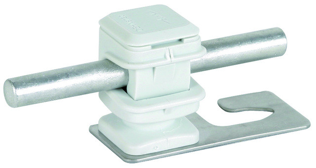 Dachleitungshalter zum Verlegen von Fangeinrichtungen auf Wellplattendächern. Ausführung gerade für Wellplattendächer Profil 5 und Profil 8 mit Leitungshalter DEHNsnap, lose Leitungsführung, aus wetterbeständigem Kunststoff, UV-stabilisiert und halogenfrei.