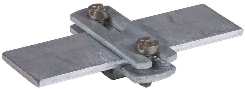 Flachbandhalter mit geschlitztem Überleger (flache Bauform), zum Befestigen von Flachleitern. Ausführung mit Langloch (6,5 x 16 mm).