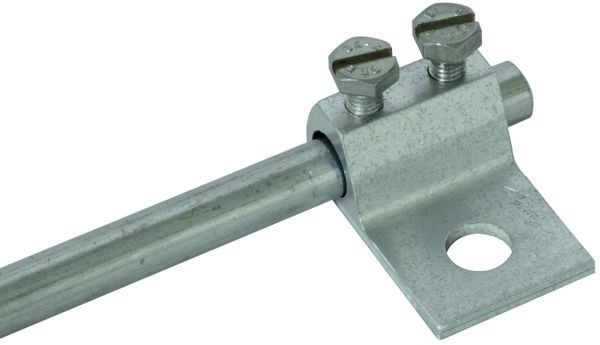 Klemmschuh nach DIN EN 62561-1, zum Anschluss von Rundleitungen an Konstruktionsteile. Ausführung mit Schrauben M6.