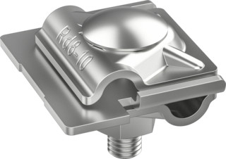 Falzklemme mit vergrößerter Kontaktfläche nach DIN EN 62561-1, zum Verbinden von Rundleitern mit Falzen. Ausführung gerade, Anschluss längs oder quer.