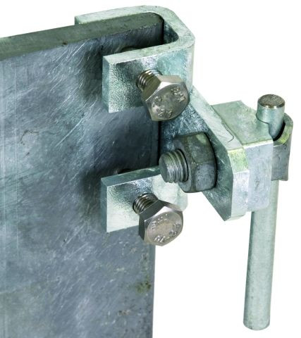 Anschlussklemme für Stahlträger nach DIN EN 62561-1, für den Anschluss an Stahlkonstruktionen. Ausführung waagrecht mit KS-Verbinder, Anschluss längs oder quer.