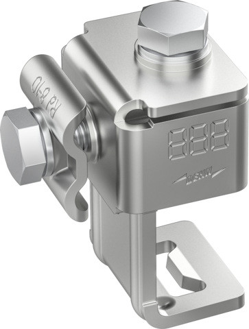 Anschlussklemme mit Klinge für Stahlträger nach DIN EN 62561-1, für den Anschluss an Stahlkonstruktionen. Ausführung mit Doppelüberleger.