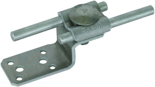 Anschlusslasche nach DIN EN 62561-1, zum Anschließen von Metallverkleidungen durch Nieten oder Schrauben. Ausführung mit Doppelüberleger.