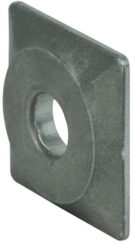 Quadratische Druckplatte mit Federwirkung für die kontaktsichere und dauerhafte Befestigung von Kugelfestpunkten an Aluminiumschienen. Druckplatte beidseitig an Schienen unterlegen.