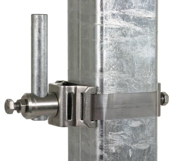 | Kurzbeschreibung | Bandrohrschelle NIRO f. Fangstangen D 16mm f. 4-Kant-Profile min. 40mm |