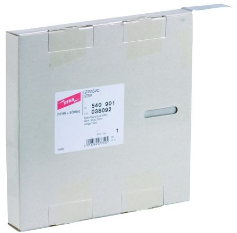 Endlos-Spannband (Länge 100 m), zum Ablängen mit Blechschere. Abmessungen 25 x 0,3 mm aus NIRO, zum Kombinieren mit verschiedenen Spannköpfen z. B. der Erdungs-, Antennen-Bandrohrschelle, Schellenkörper der Ex-Bandrohrschelle.