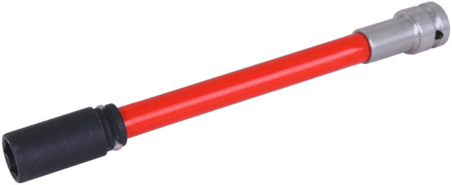 Edelstahl Verlängerungswerkzeug ca. 200 mm mit magnetisch gefederter Stecknuss (SW17) und einer 1/2 Zoll Vierkant Aufnahme für die Verwendung mit einem Schlagschrauber. Mit rotem Freilauf Griff. Zusätzlich enthalten: O-Ring und Sicherungsstift.