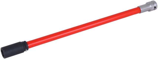 Edelstahl Verlängerungswerkzeug ca. 400 mm mit magnetisch gefederter Stecknuss (SW17) und einer 1/2 Zoll Vierkant Aufnahme für die Verwendung mit einem Schlagschrauber. Mit rotem Freilauf Griff. Zusätzlich enthalten: O-Ring und Sicherungsstift.