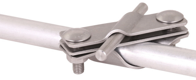 Anschlussschelle nach DIN EN 62561-1, zum Anschluss von Rundleitern, Seilen und Flachbändern an Tiefenerdern. Ausführung schräg mit Flachrundschraube, auch für ungeschnittene Erdleitungen.