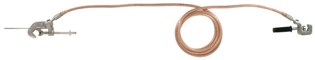 Einpolige Erdungs- und Kurzschließvorrichtung nach DIN VDE 0683-100 (EN/IEC 61230) für Speiseleitungen und Bahnstromleitungen elektrischer Bahnen, 4 m lang, mit Leiterklemme und Universalklemmen mit Handgriff.