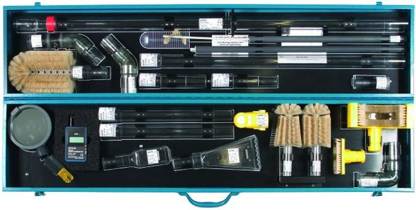 Trockenreinigungsset TRS MS V1 nach DIN VDE 0682-621 zum Reinigen durch Absaugen unter Spannung bis 36kV / 15 ... 60 Hz von Transformatoren und Schaltanlagen in Innenraum- und Freiluftanlagen, komplett im passenden Transportbehälter. Speziell angepasste Arbeitsköpfe zur Intensivreinigung. Steckkupplungssystem zum schnellen Umrüsten der Arbeitsköpfe. Saugluftregulierung im Handhabebereich. Transparente Saugrohre für mehr Sicherheit.