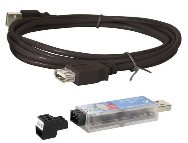 Der USB-Nano-485 wandelt zwischen USB- und RS-485-Signalen. Das Gerät ist speziell für den 2-Draht RS-485-Bus konzipiert. Die LEDs signalisieren Betrieb (gelb), Rx (grün) und Tx (rot). Wegen der extrem geringen Abmaße ist der USB-Nano-485 besonders für mobile Verwendung an Notebooks geeignet. Stationäre Anwendungen sind jedoch ebenfalls möglich.