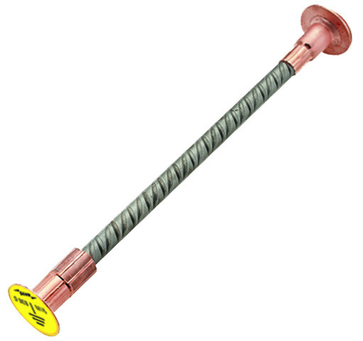 Betonstahl-Erdungsbrücke nach Richtline der DB Netz AG Ril 997.0205A01, zur Erdung, Rückstromführung sowie dem Potentialausgleich im Nutzungsbereich von Bahnstrecken. Bestehend aus zwei Anschlussplatte aus NIRO mit Anschlussgewinde M16. Ausgelegt für Kurzschlussströme > 25 kA.