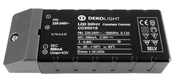 Deko-Light, Netzgerät (CC, DC), BASIC, CC, CC50018/18W, Stromkonstant, 1,0-18,0 W, Eingangsspannung: 220-240 V/AC, Ausgangsspannung: 2-38 V/DC, IP 20