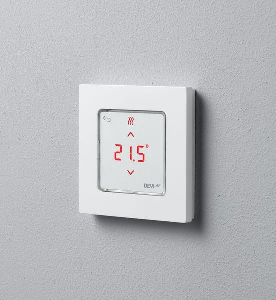 Das neue Raumthermostat für Warmwasser-Fußbodenheizungen und andere Anwendungen mit Stellantrieb, passend zu fast jedem Schalterprogramm. Mit Touchscreenbedienung, geräuschloses Schalten, Antiblockierfunktion